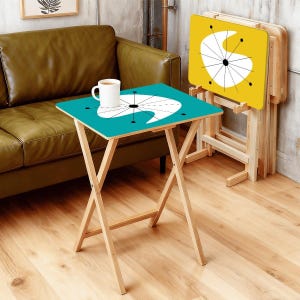 So perfect. Reconditioning a retro MCM bathroom with old pale blue tile. Found a perfect MCM shower curtain on Etsy that made it all pop. My heart is singing.