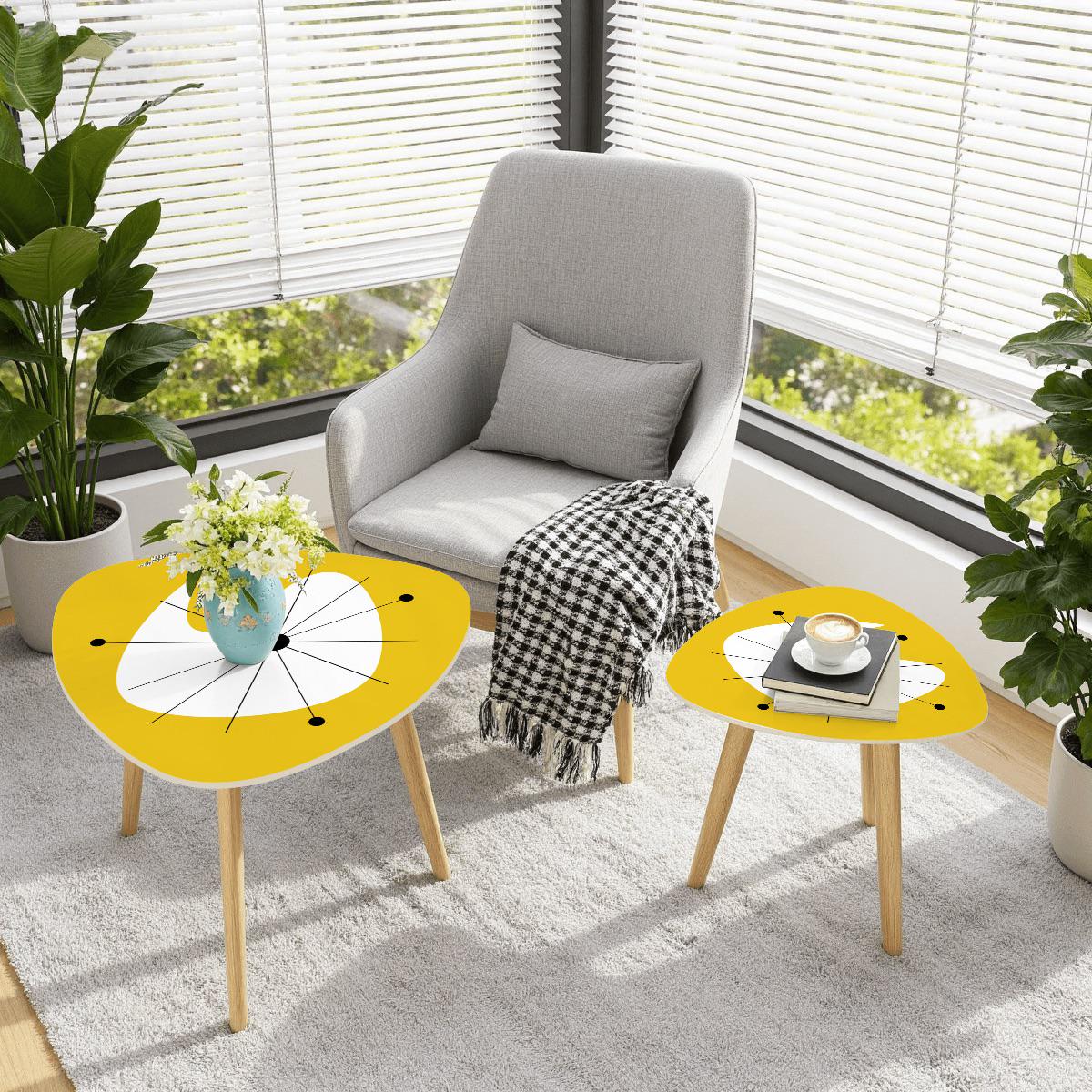 Love the creative atomic design applied to the tabletops. Great addition to my living room!