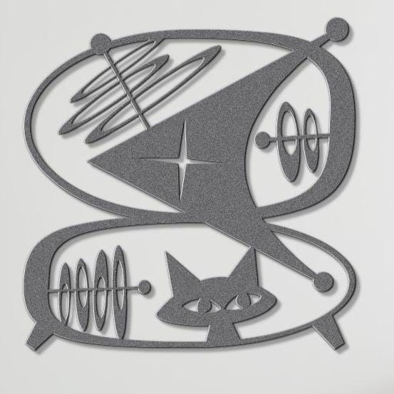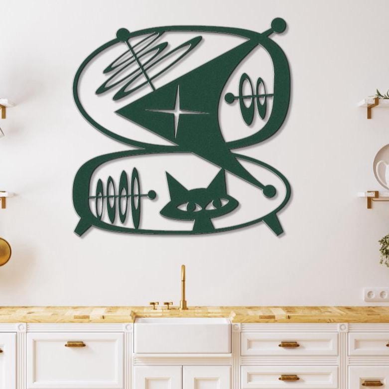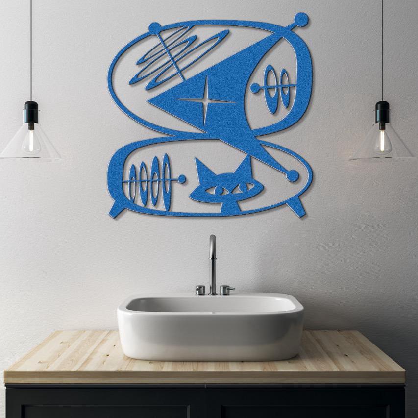 Atomic Cat Space Voyage - Mid Century Modern Wall Art