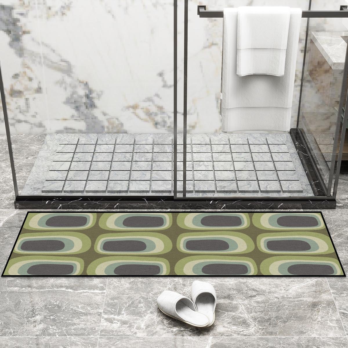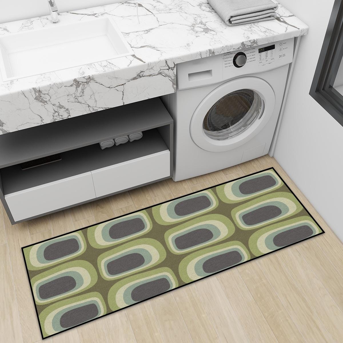 Modern multi-purpose runner rug in a stylish mid-century modern print. The rug is easy to clean and comes in 2 sizes to suit your decor needs. Perfect for kitchen, entryway, hallway or more.
