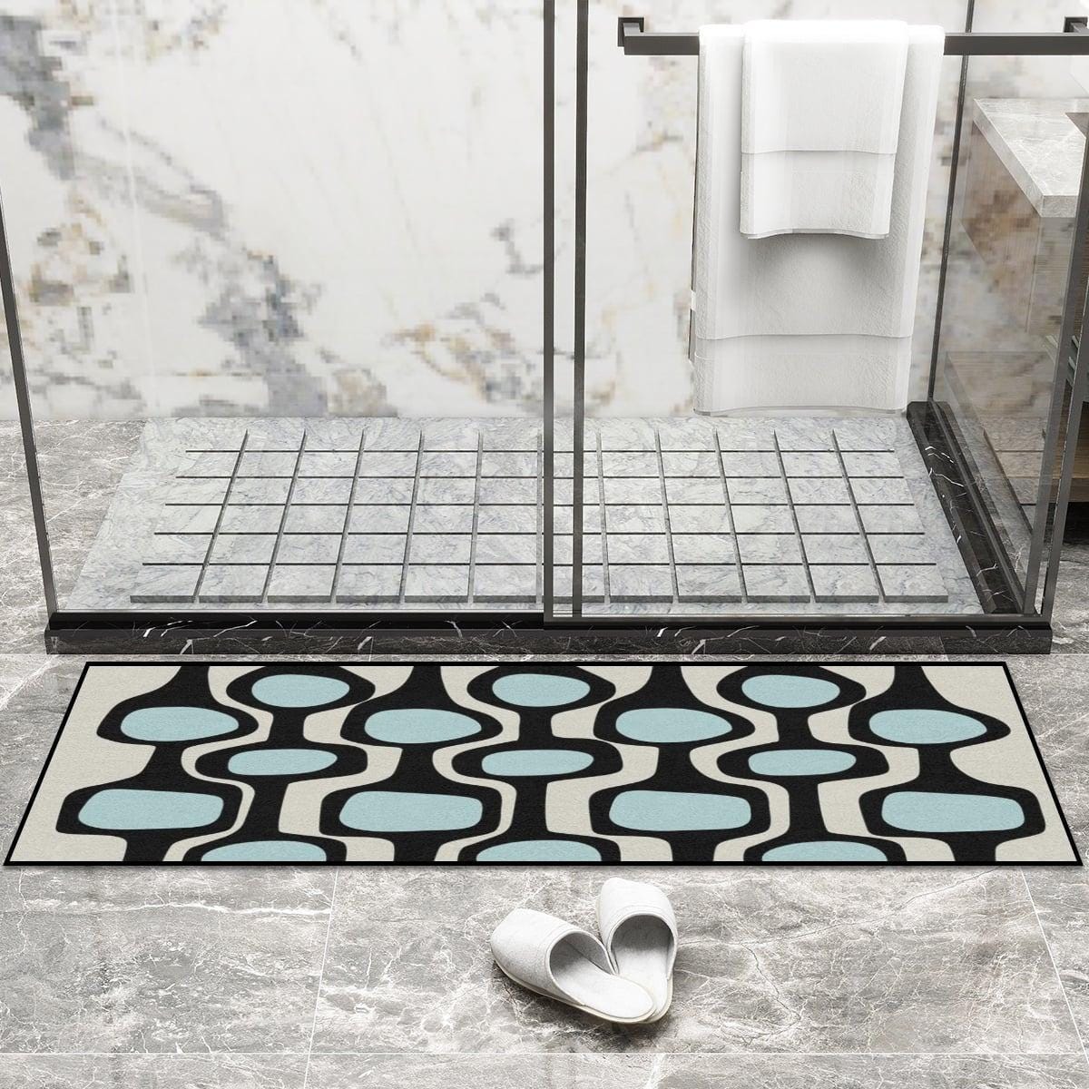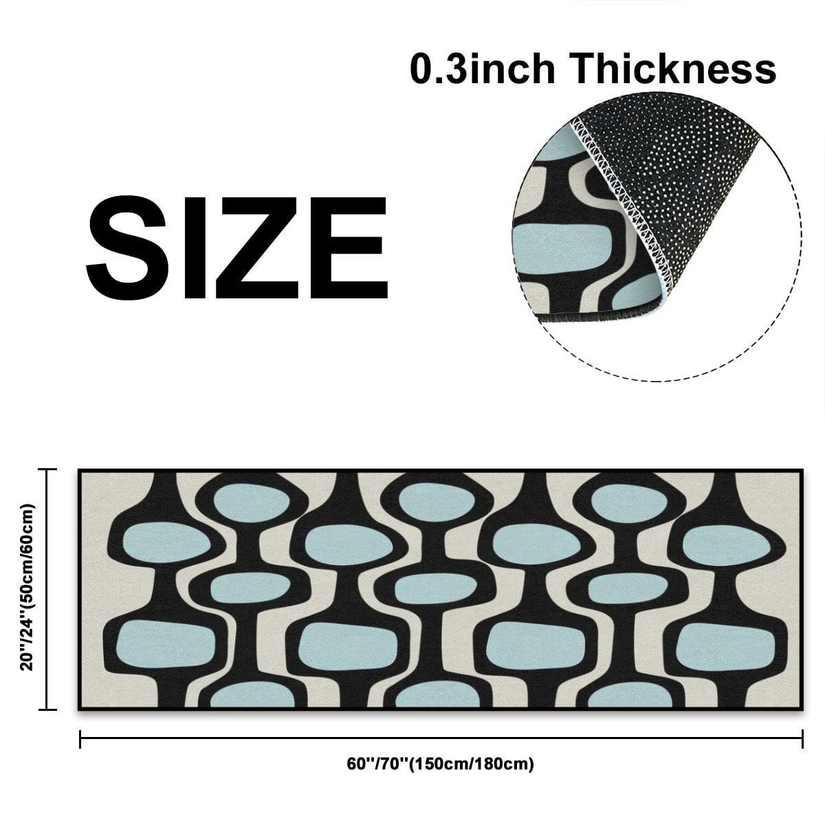 Modern multi-purpose runner rug in a stylish mid-century modern print. The rug is easy to clean and comes in 2 sizes to suit your decor needs. Perfect for kitchen, entryway, hallway or more.