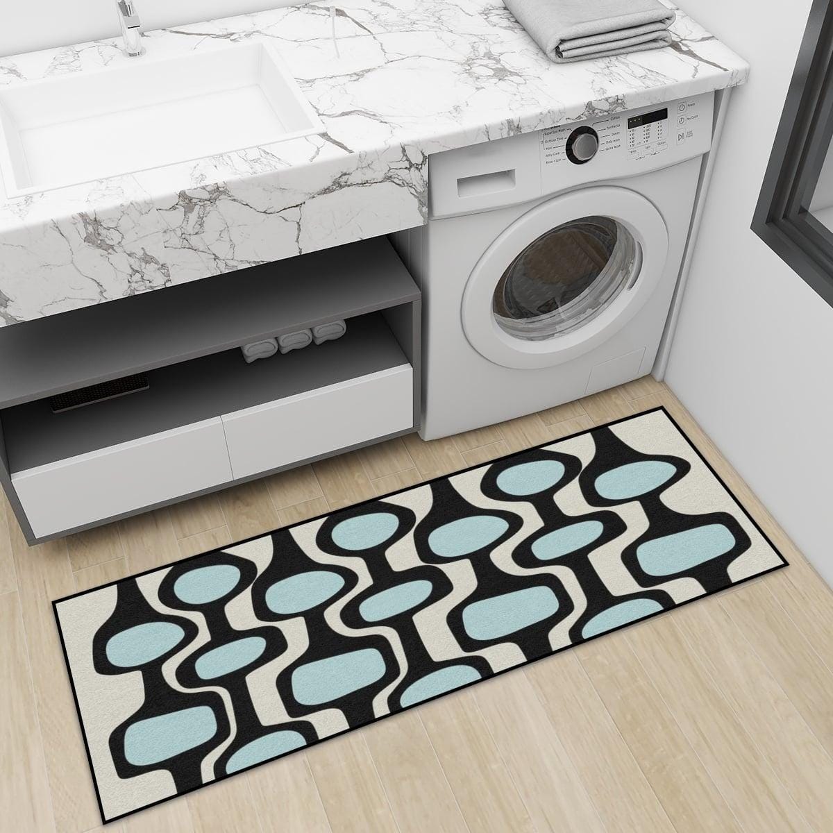 MCM Runner Rug for Kitchen, Bedroom, Entryway in Retro Blue and Beige
