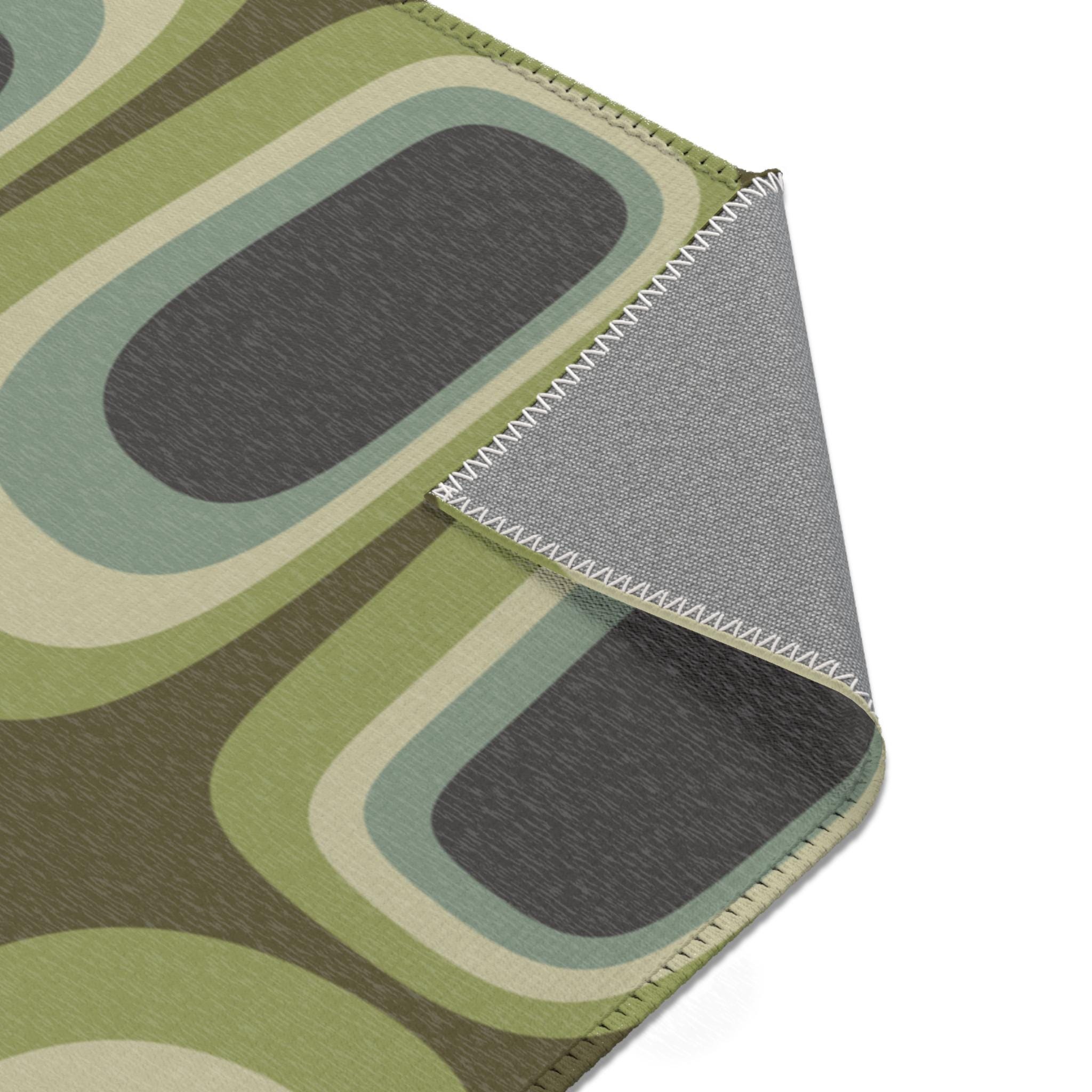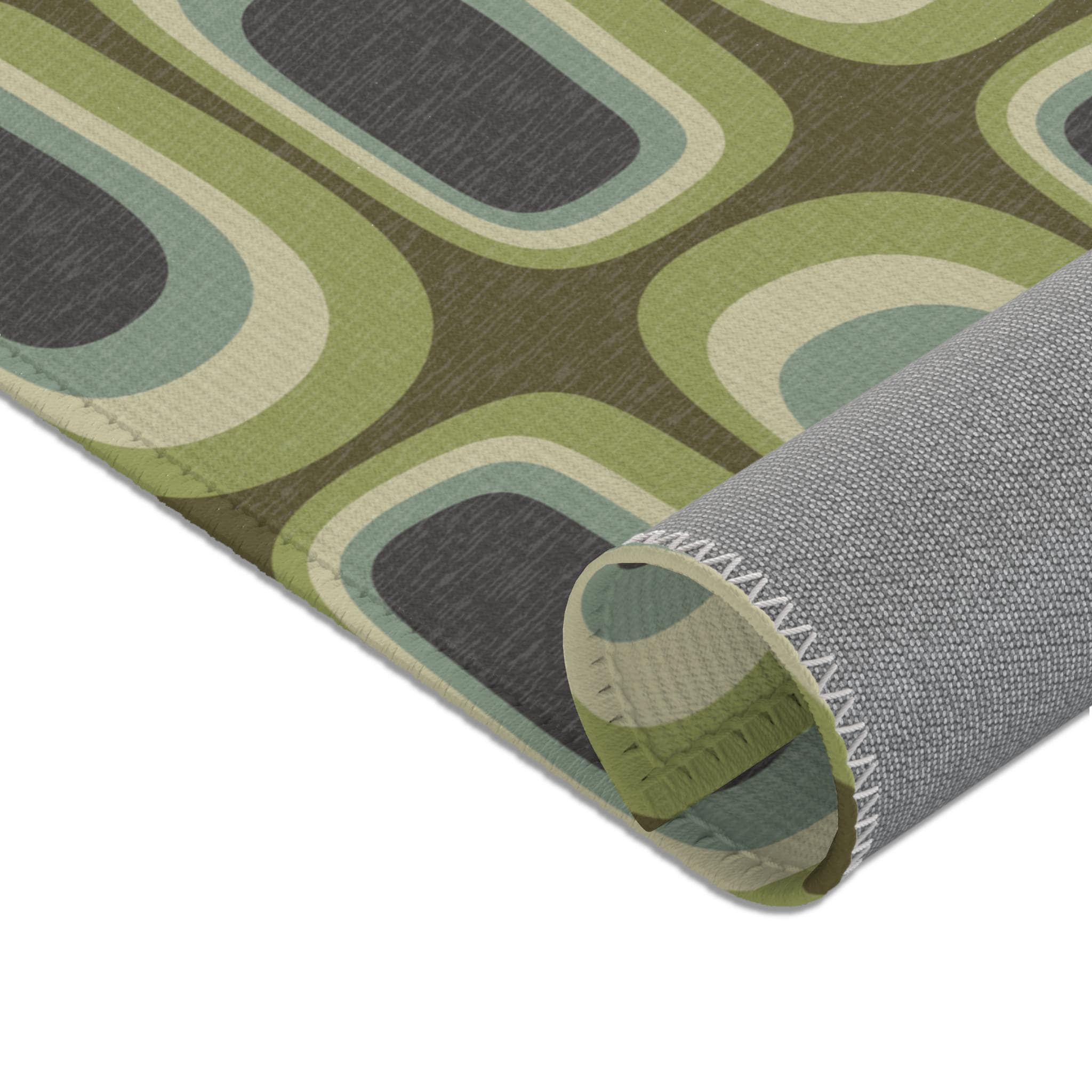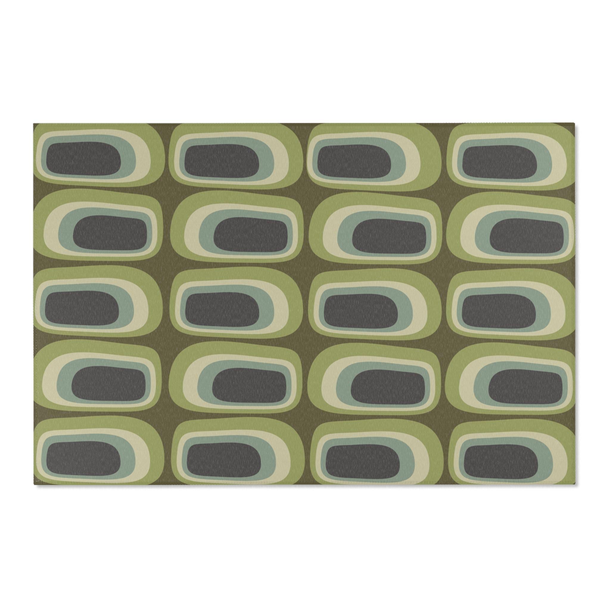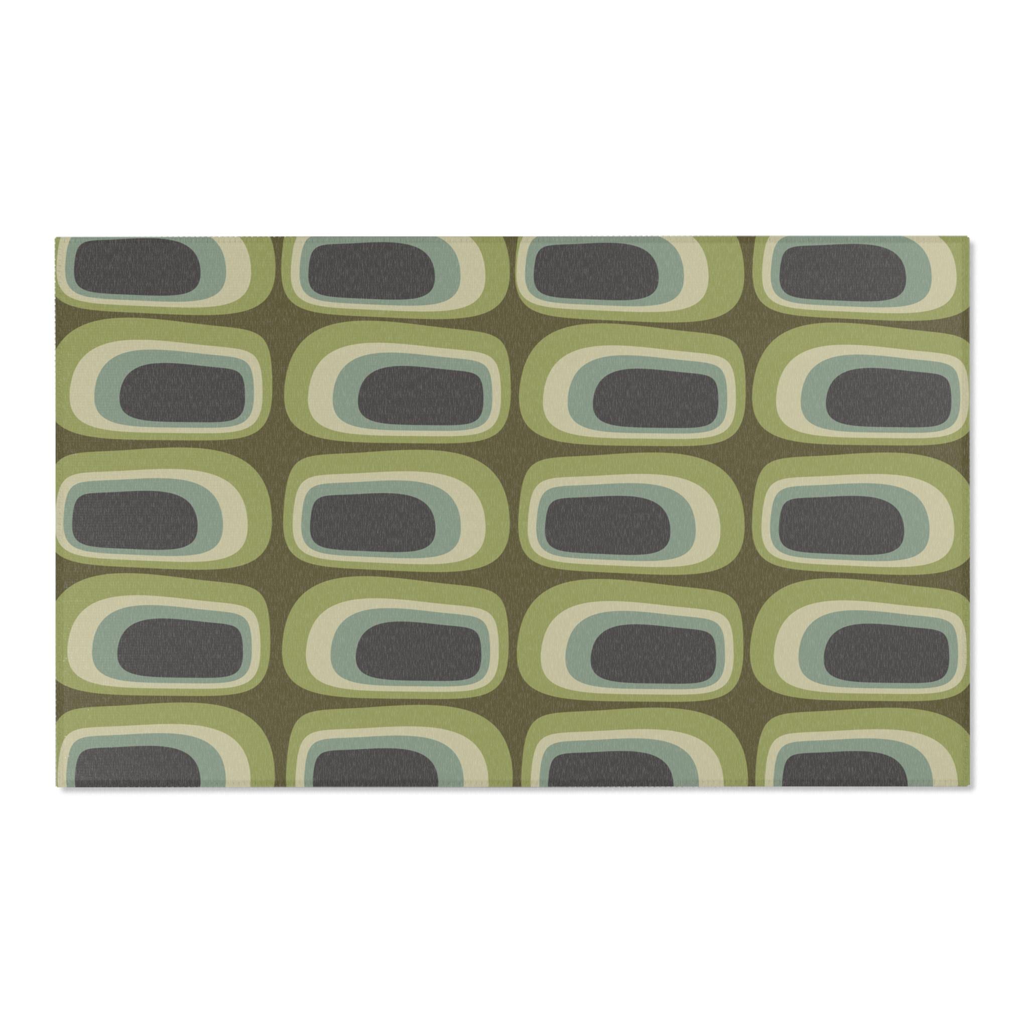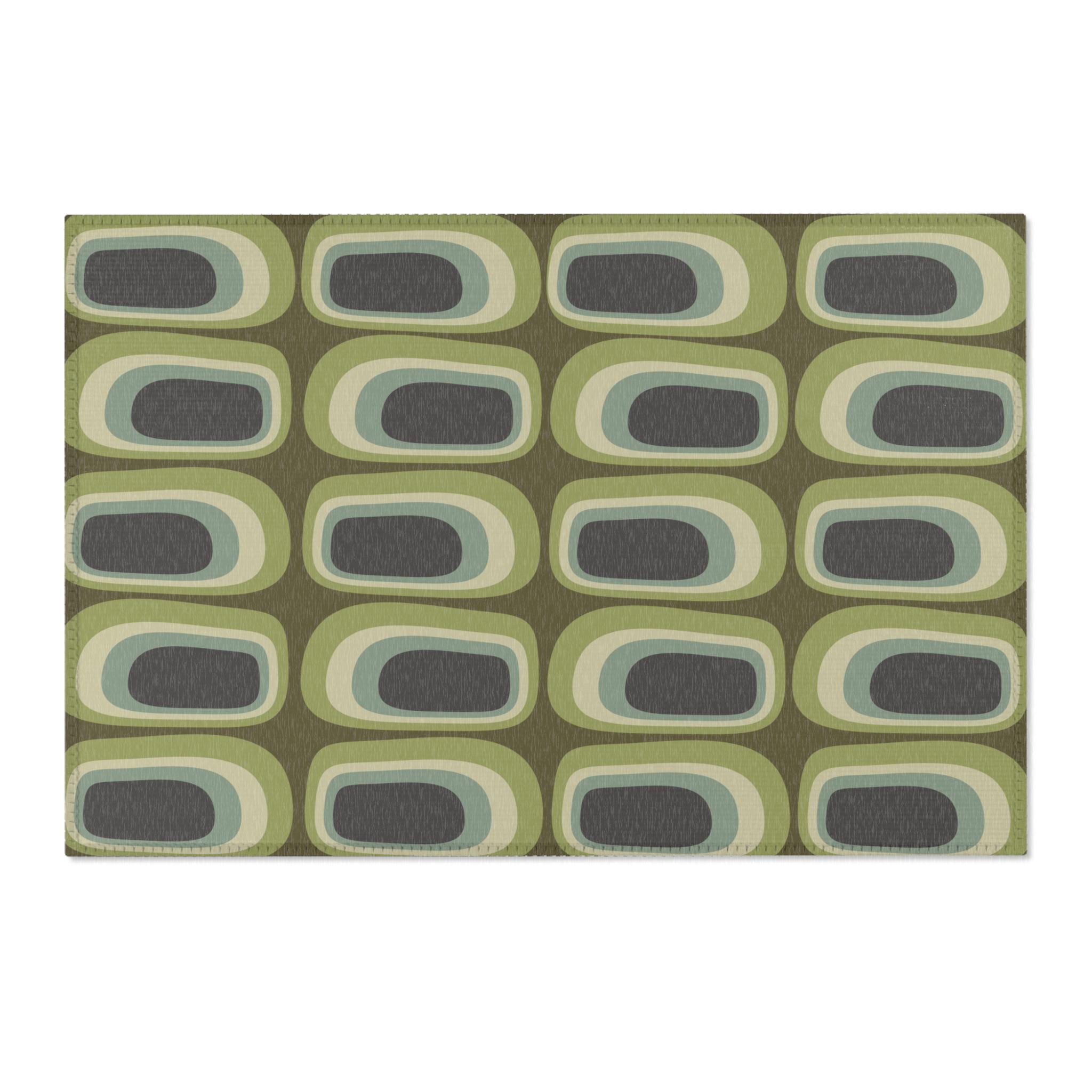 Mid Century Retro Oval Pattern Area Rug | Olive Green Geometric