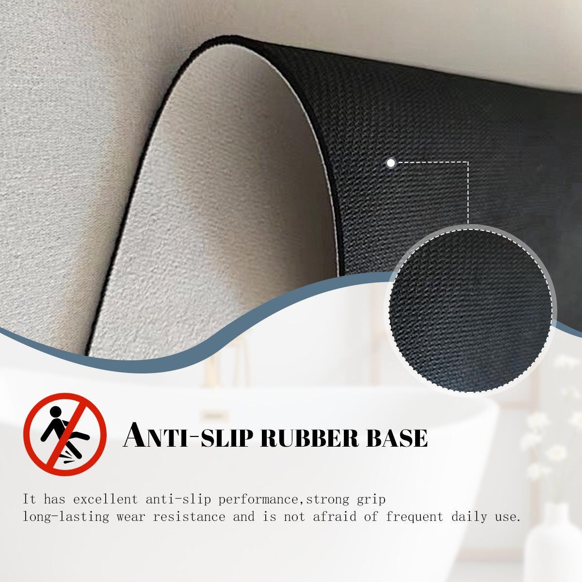This diatomaceous earth soft mat, crafted with technical fabric, combines comfort and quality. The rubber backing offers excellent anti-slip performance, strong grip, and durability, making it suitable for frequent daily use. Cleaning is convenient and easy. The edges feature an elegant oval curve design to effectively prevent bumps and bruises, gently protecting your feet. It also boasts excellent portability and storage; when not in use, it can be rolled up and stored in a corner to save space, making it a practical item to enhance your home's quality of life.