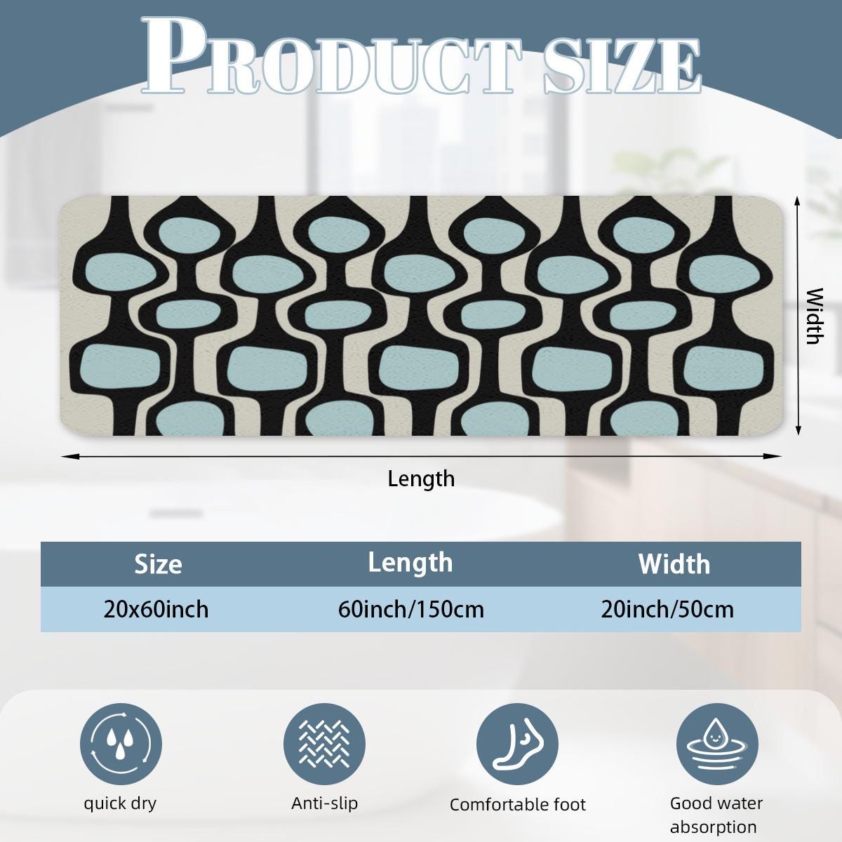 MCM Runner Rug - 20 x 60 inches - Retro Kitchen, Bathroom, Bedroom, Hallway Rug